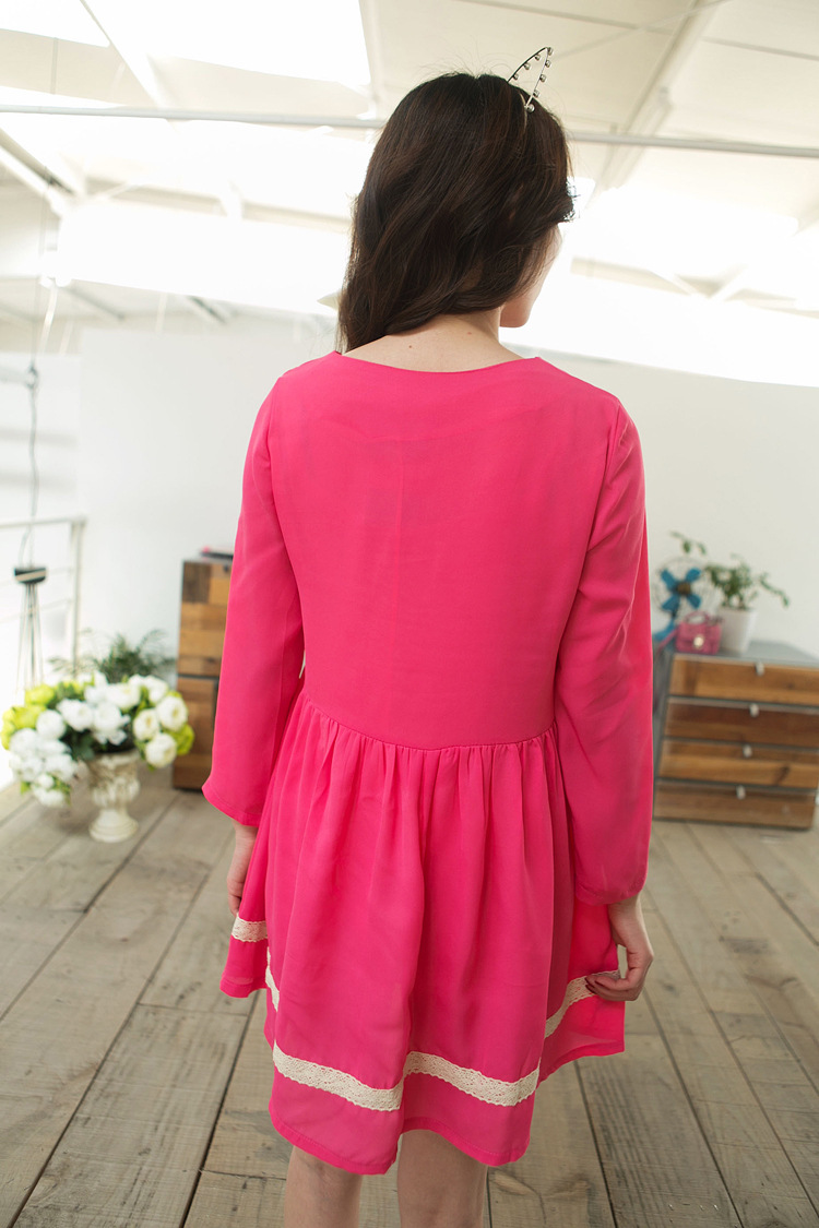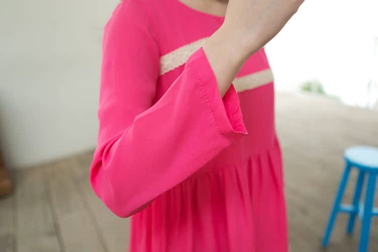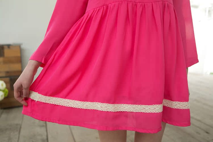2015新款蕾絲花邊長袖雪紡公主連衣裙批發