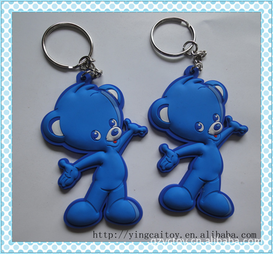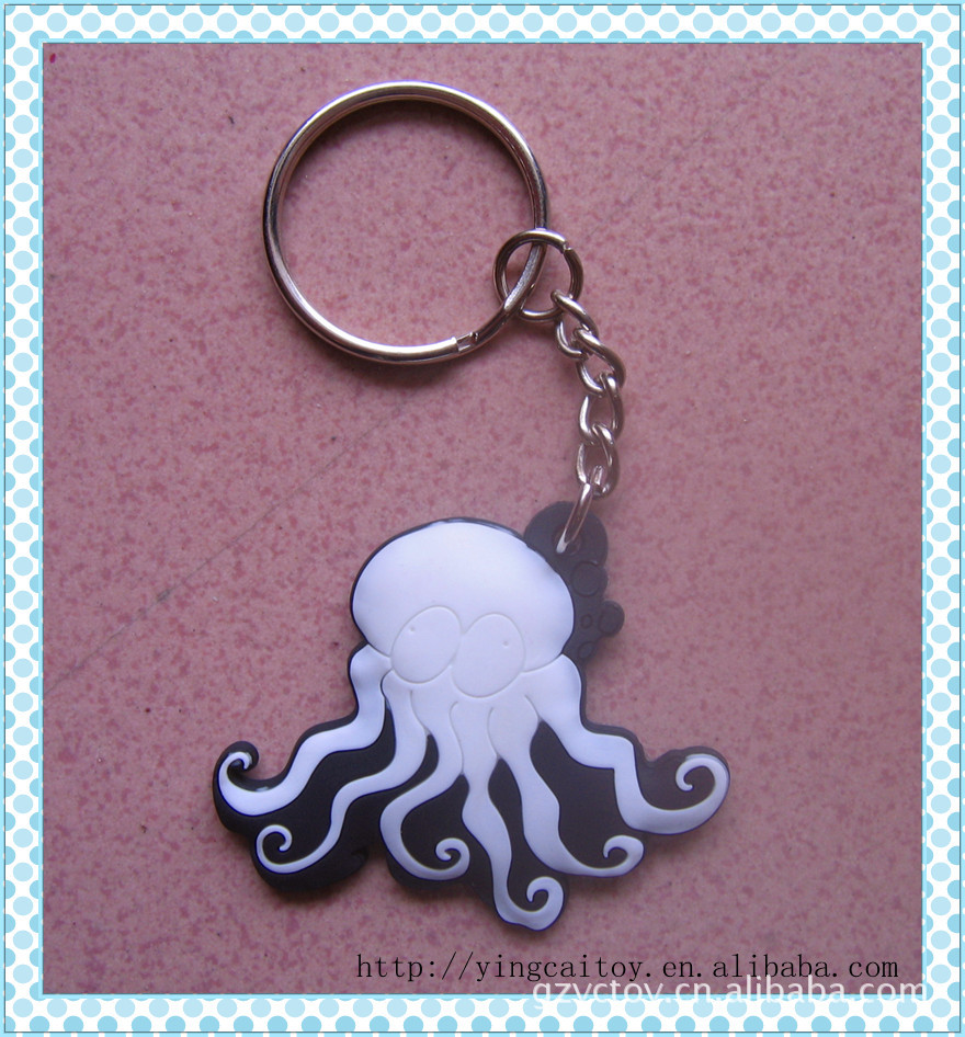 材質:pvc軟膠,鑰匙扣部分按客戶要求搭配不同的形狀,大小及規格的鑰匙圈。