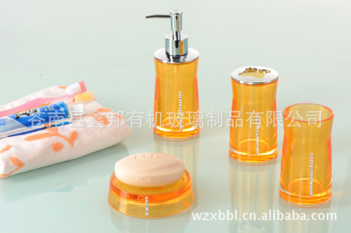 亞克力衛浴四件套系列材料采用透光性極強的壓克力(俗稱有機玻璃,英文縮寫:PMMA),通過進口注塑機注塑而成,外表光滑,光澤瑩潤,外觀新穎。質優、別致和實用的特點,瞬間將您乏味、單調的衛生間變成時尚的,是現代家庭的理想選擇。產品暢銷國內并遠銷歐美、東南亞。歡迎新老客戶垂詢!