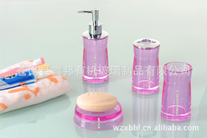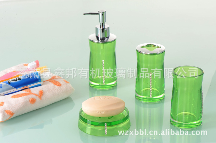 進口亞克力 加厚高檔衛浴四件套 鑲鉆透綠