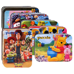 【伙拼】廠家直銷 紙制便攜鐵盒拼圖 24-50片 益智早教 兒童玩具