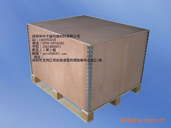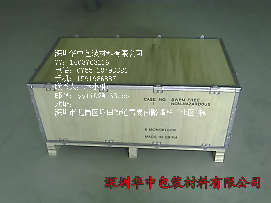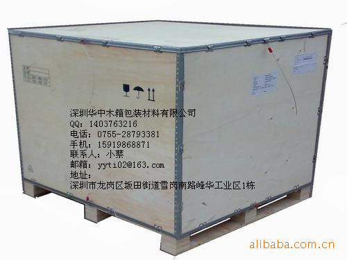 深圳華中包裝 公司主要產品類型有:出口木箱、出口卡板、免熏蒸木箱、熏蒸木箱、免熏蒸卡板(托盤)、熏蒸卡板(托盤)、真空包裝箱、防水木箱、防震木箱、夾板箱、實木箱、地臺板、棧板等各種包裝材料。產品承重從幾公斤到幾十噸。廣泛適用于機械、電氣(電器)、通信、玻璃、精密儀器數控機柜(機床)等產品設備的安全運輸包裝。公司已通過ISO9001:2000國際質量體系認證;產品曾榮獲《中國中輕產品質量認證中心》、《質量、信譽雙保障示范單位》。