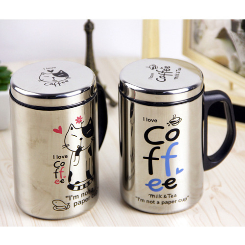 廠家直銷 創意韓版卡通咖啡貓不銹鋼辦公杯/水杯批發支付寶混批