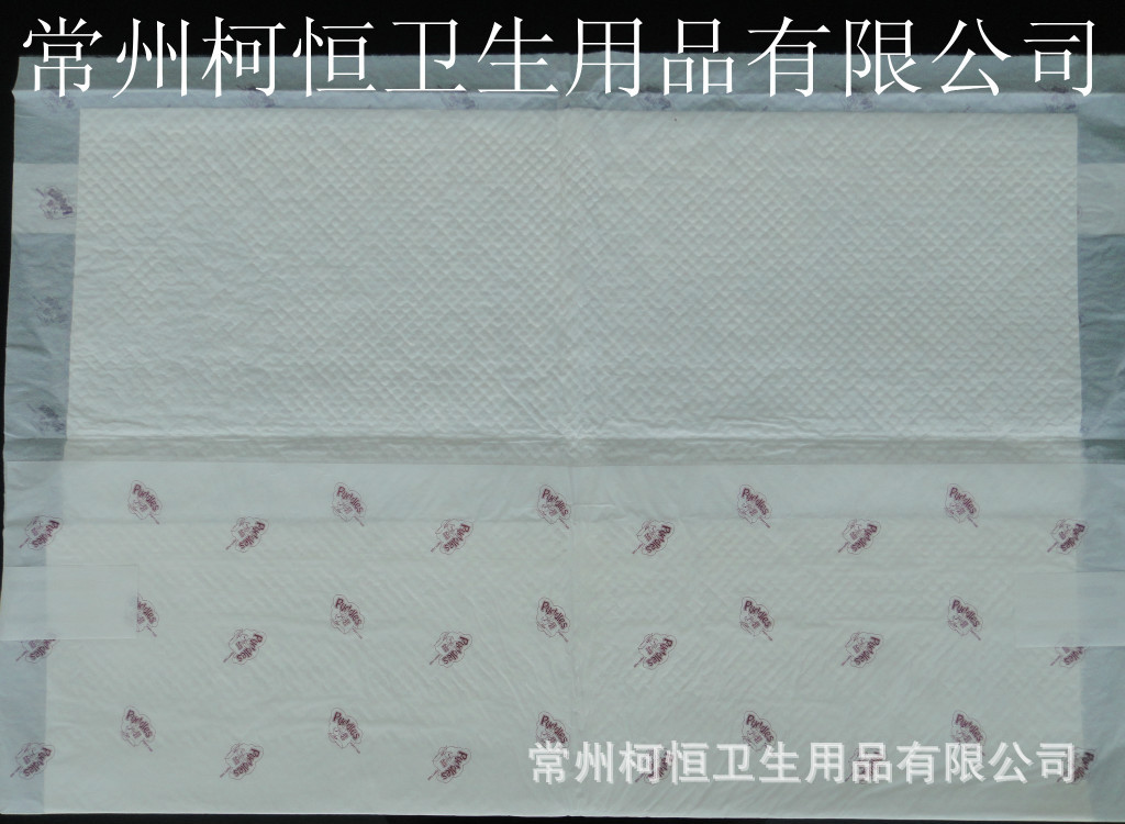 產品結構:底部PE流延膜,上敷熱軋無紡布,中間吸液層由進口優質絨毛漿及高效高分子吸水樹脂組成。 產品規格:300mmx450mm,400mmx 500mm, 450mmx600mm, 600mmx600mm, 可以按照客戶的尺寸、克重、顏色及其它要求進行生產。