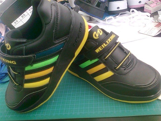 乍眼看去,暴走鞋(飛行鞋)的外貌與普通運動鞋沒有什么區別。翻轉鞋底,你便會發現,鞋底的后跟部位比普通鞋多了一個小單輪??蓜e小看這個小單輪,它可是用飛機輪胎的原料制造的,非常堅固耐磨,也是良好的制動裝置設備,使滑行更具安全感。據稱,學會使用暴走鞋娛樂僅需1天時間,每只鞋靠一個轱轆滑行。