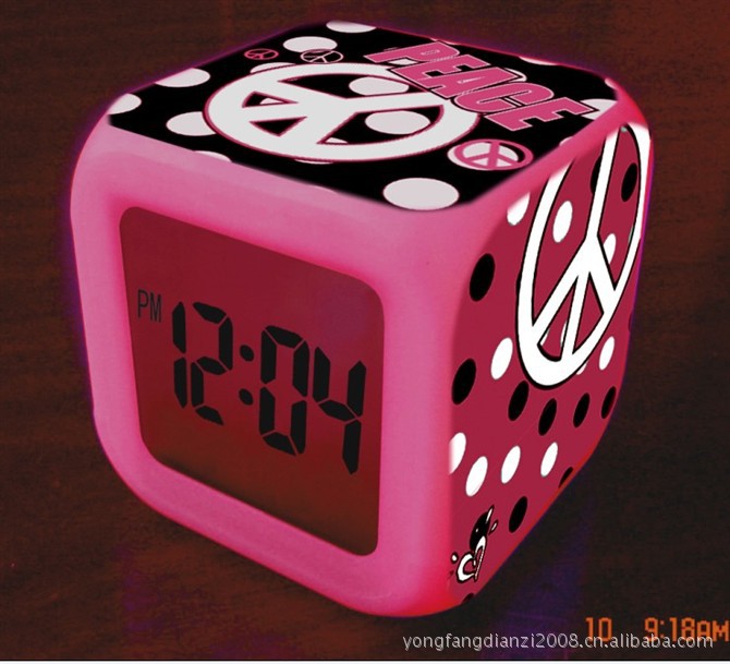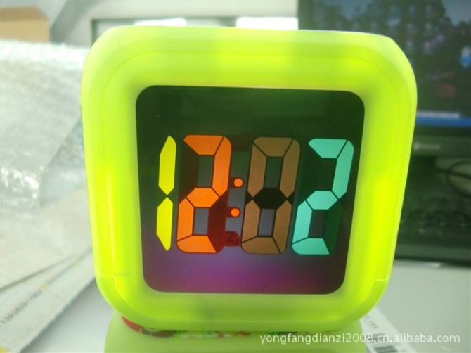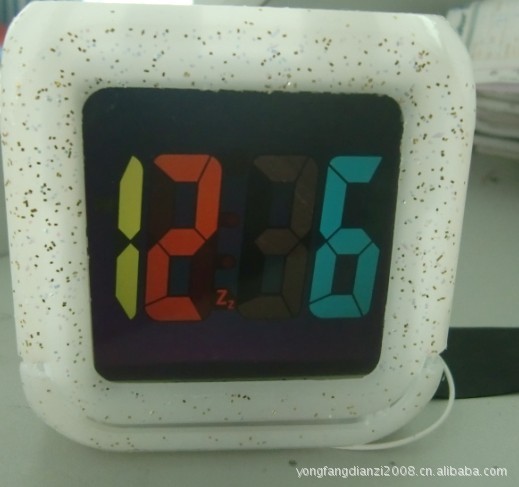 7彩方形鐘,卡通鐘,電子鐘,四色數字顯示鐘