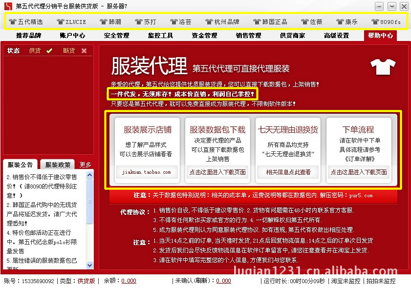 4.支持網站平臺:淘寶網/拍拍網/有啊網和實體店鋪經營(同時支持不另收費);(由于百度有啊平臺4月底正式關閉,所以軟件的有啊自動充值功能暫時關閉,具體請留意百度公司消息和軟件公告)