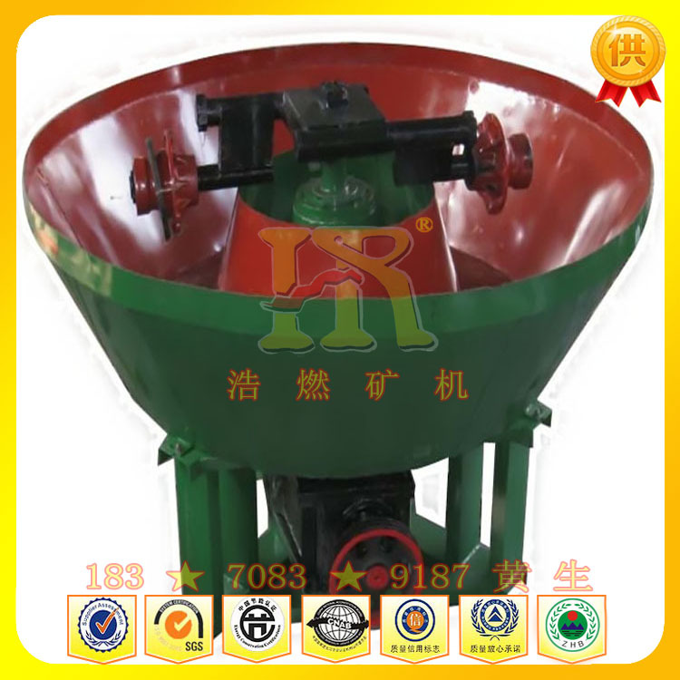 該選金設備特點:投資可大可小。投資小,可采用單臺式選礦,資金大,可群組式選礦。例如一組2臺、4臺、8臺、12臺都可以生產??傊?,不管球磨機還是選金設備,都是起到碎礦達到所須目數為目的,另外,我廠生產的碾磙是采用套圈式的,使用一年后,換碾磙時只須換外邊的磙圈就行了,碾磙、碾底是用純白鐵加入特種耐磨材料加工制成,經久耐用。目前,各個選廠都在想方設法降低生產費用,有些原來使用球磨機的選廠已經停掉球磨機改用選金設備選礦了。