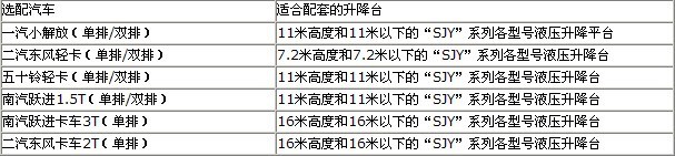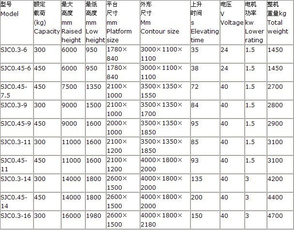 二、SJC車載式升降平臺參數如下: