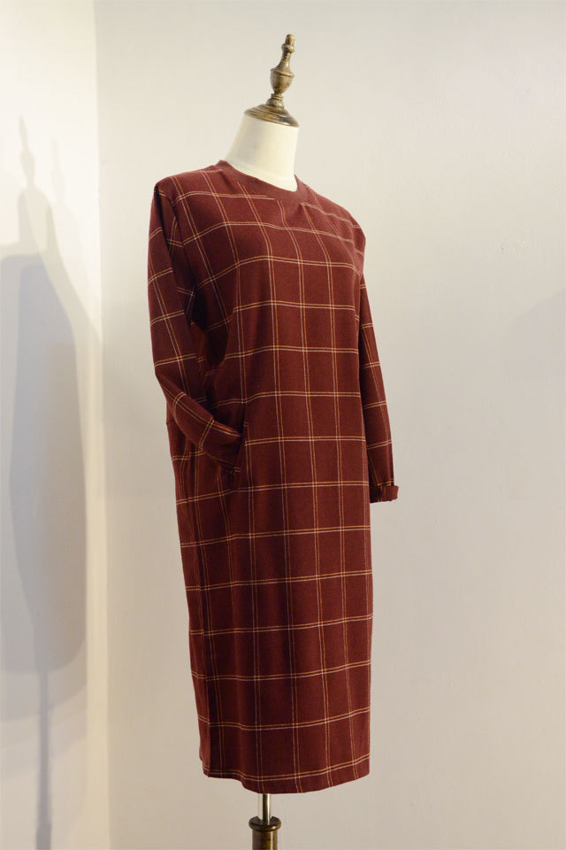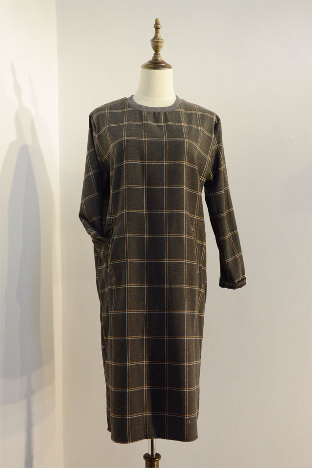 2638 原價49 清倉 30 不退不換 女裝格紋圓領顯瘦長款連衣裙