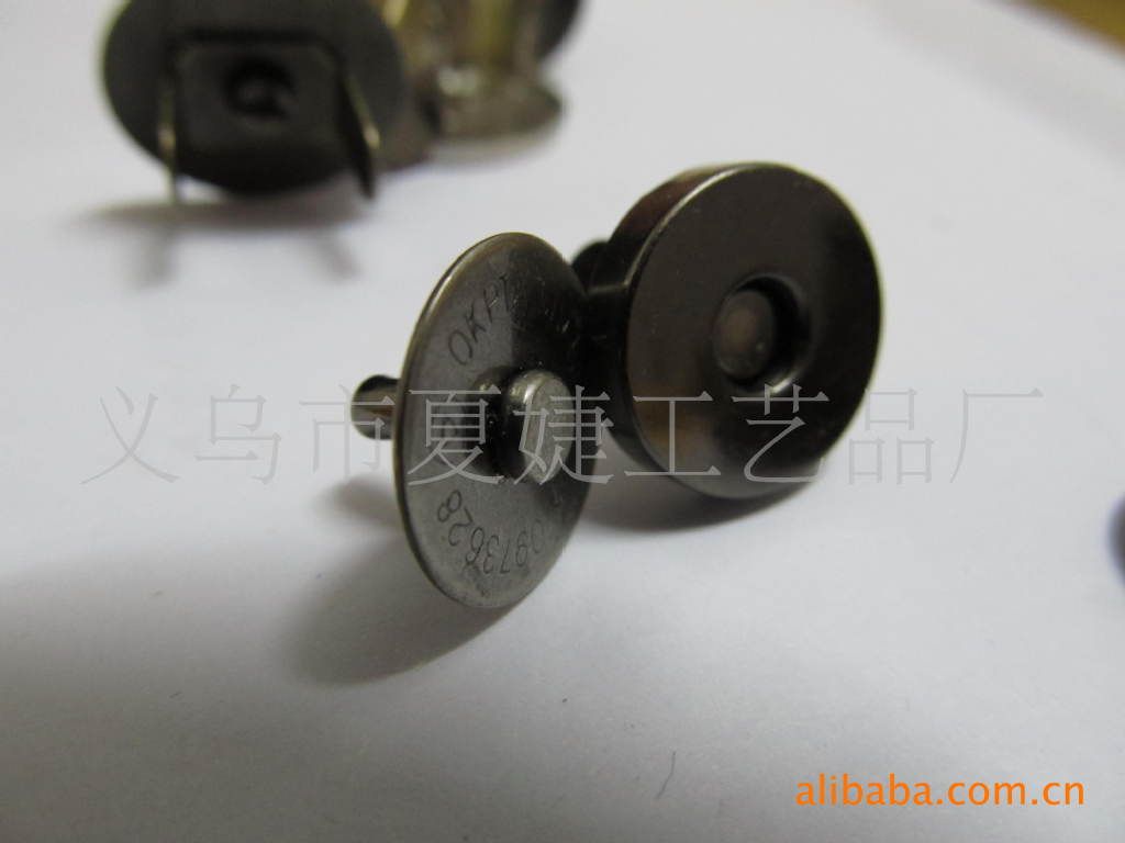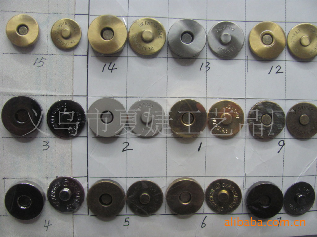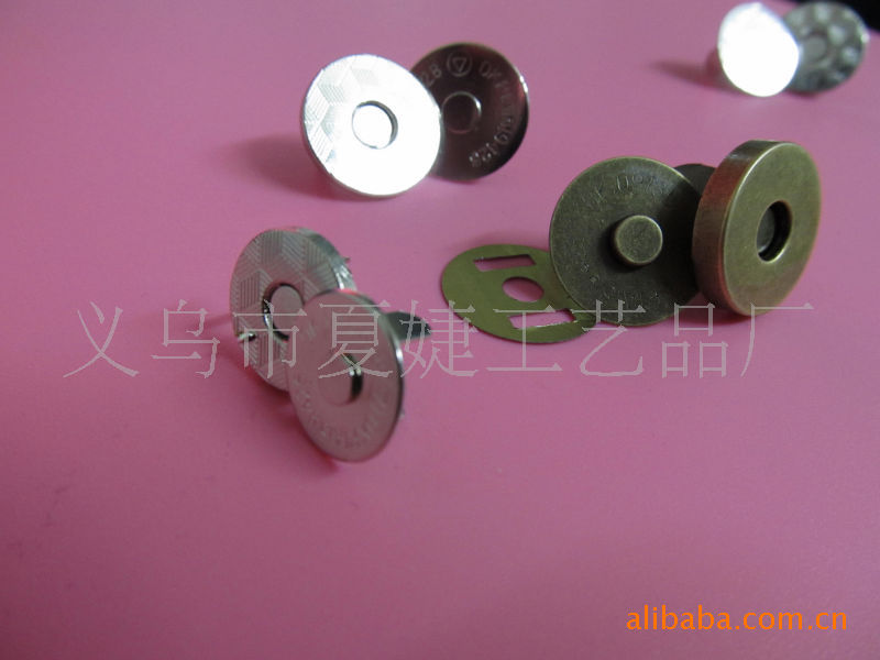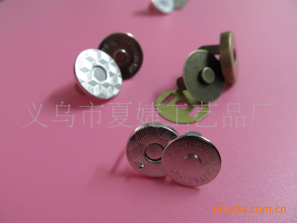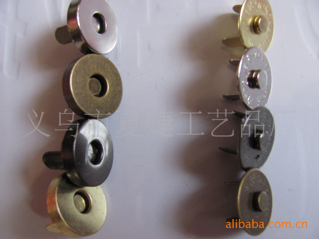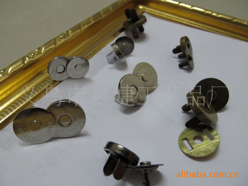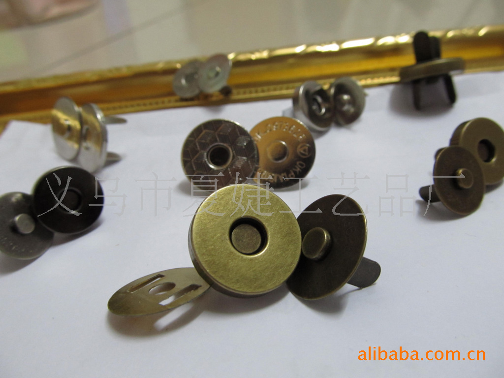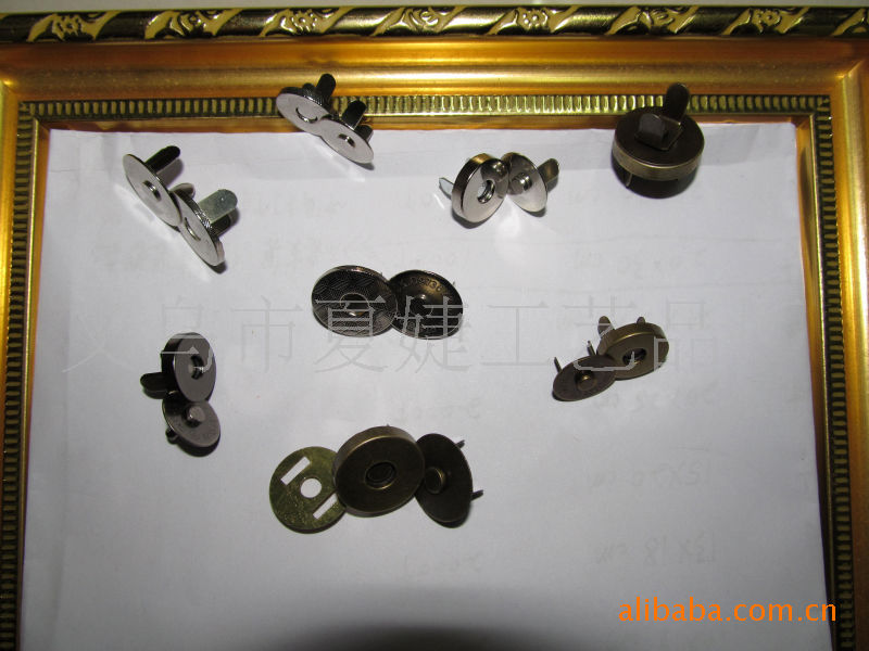 你好,我廠專業生產各種磁扣,磁按扣,厚的直徑1.0CM 1.4CM 1.5CM 1.8CM ,超溥直徑:1.0 CM 1.2 CM 1.4CM 1.8CM,電鍍各種顏色等等,常規規格我司倉庫備有大量現貨,以及各種規格的各種類型相框配件/家具配件/五金配件等,產品有:合頁、螺絲、角花、銅掛、包角、吊掛、角釘、片釘、直釘、帽釘、掛勾、 箱包包角,鎖扣,壓片,撥片,擋片;金屬彈片,瓜子片,月亮片; 掛片,三角掛鉤,掛鉤,葫蘆片;背扣,,相框合頁、雞眼,空心鉚釘,鉚釘,單面撞釘,雙面撞釘;角碼;五金拉手,箱包拉手,五金曲手,合頁鉸鏈,鐵合頁,小合頁,七字合頁,三叉合頁,