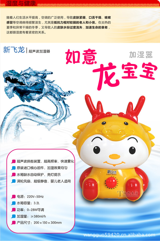 龍年禮品 新款 新飛龍寶寶家用加濕器 超聲波 帶彩燈批發