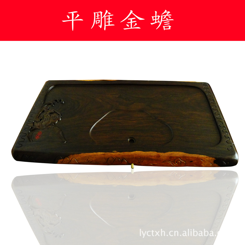 平雕黑檀;黑檀木茶盤,淺色部分為檀木樹皮部分,茶盤木紋紋理清晰,手感細膩。這款黑檀平雕;黑檀木茶盤低廉,結構緬而勻,耐腐、耐久性強、材質硬重、細膩,是一種十分稀少的珍貴茶盤。