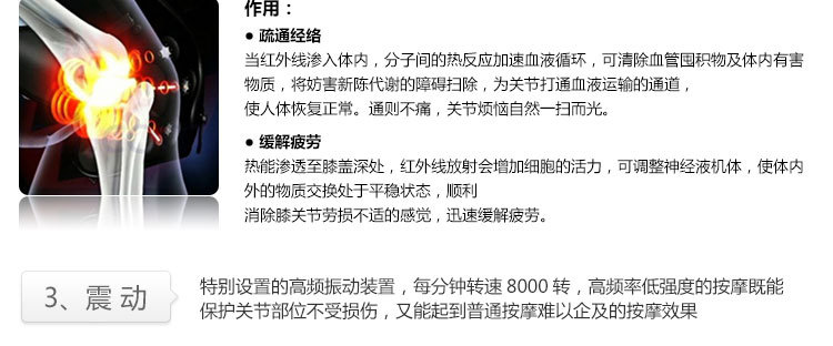 高頻率低強度的振動按[mo],既能保護關節部位不受損傷,又能起到普通按[mo]難以啟及的效果。