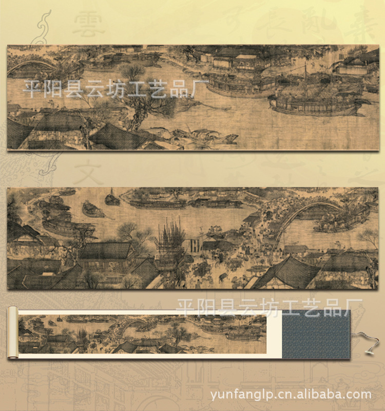 廠家直銷 絲綢卷軸畫 中國十大傳世名畫之一 清明上河圖(局部)