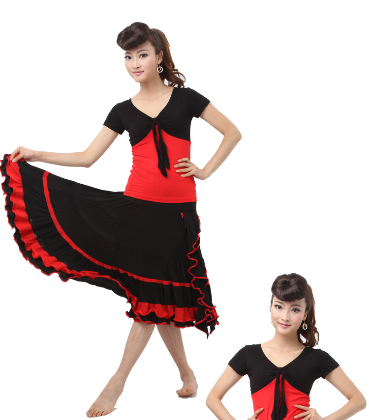 特價新款廣場舞服裝 廣場舞蹈服裝套裝 拉丁舞服裝大擺長裙 短袖