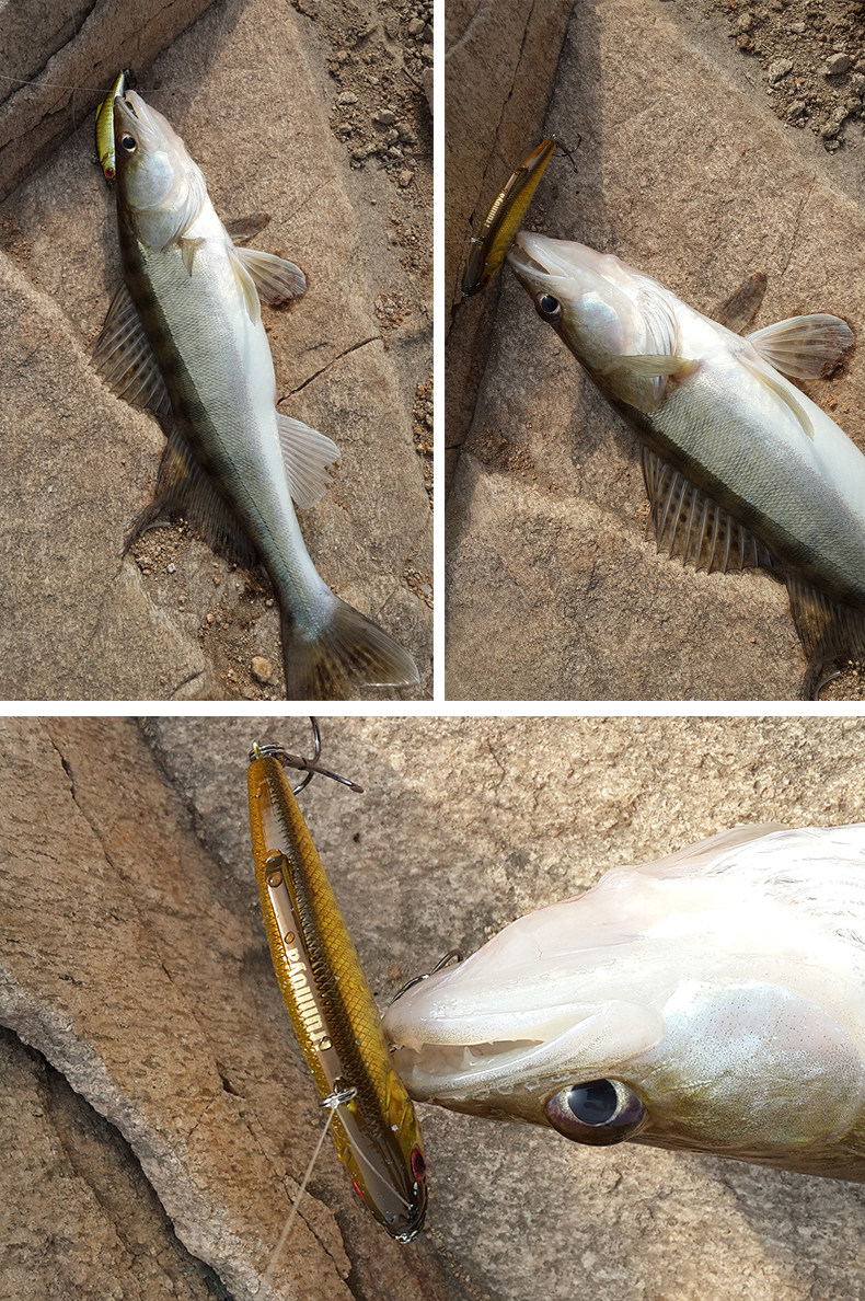 長 度:74毫米 重 量:13克特 點: 1.體內有重心轉移鋼珠,拋投時能夠移動到尾部,提高拋投距離??罩凶藙莘€定流暢,不容易打轉利于拋投。 2.采用的涂裝,表面的豎條魚鱗紋鐳射,能全角度反射外來光,有極佳的光誘魚效果。適合不同的水情。 3.體內有數粒小鋼珠,拖動時會發出聲響,強烈吸引魚的注意。