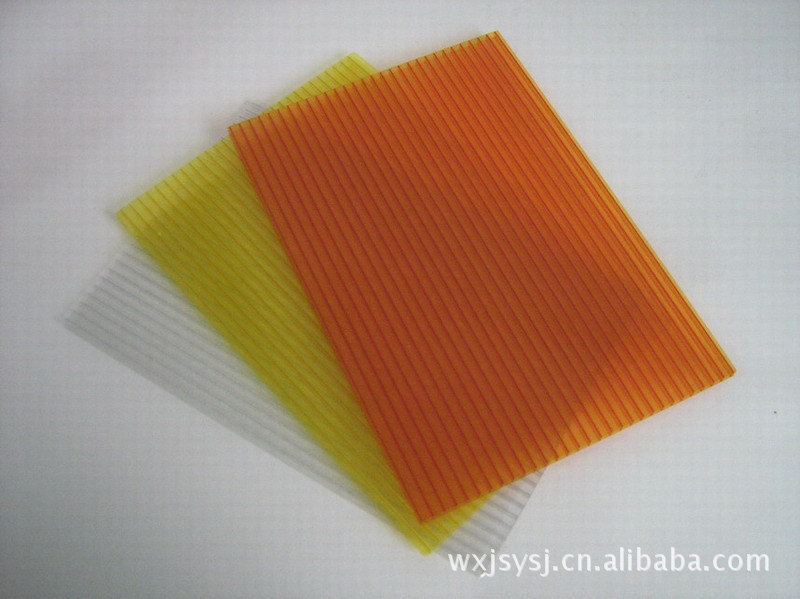 陽光板是以聚碳酸塑料為原料經熱擠出工藝加工成型的透明中空板。是國際上廣泛采取的一種高強度、透明、隔音、節能的新型優質裝飾材料。相比夾膠玻璃,夾絲玻璃,鋼化玻璃,陽光板和耐力板更具輕質、耐候、超強、阻燃、隔聲的優良性能。