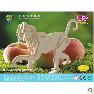 拓文木制立體拼圖玩具 3D立體防真模型 DIY 猴