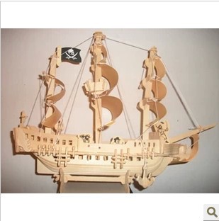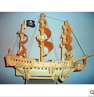 正品清強木制拼板拼圖玩具 3D立體木質防真模型 船模加勒比海盜船