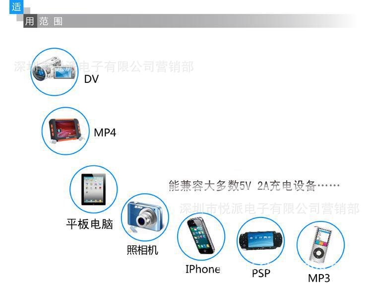 適用機型:手機,智能手機,iPod,iPhone,mp3,mp4,藍牙,PSP,數碼相機,DV,上網本,筆記本等。 一機多用,時尚便捷