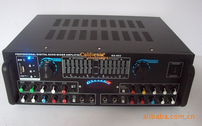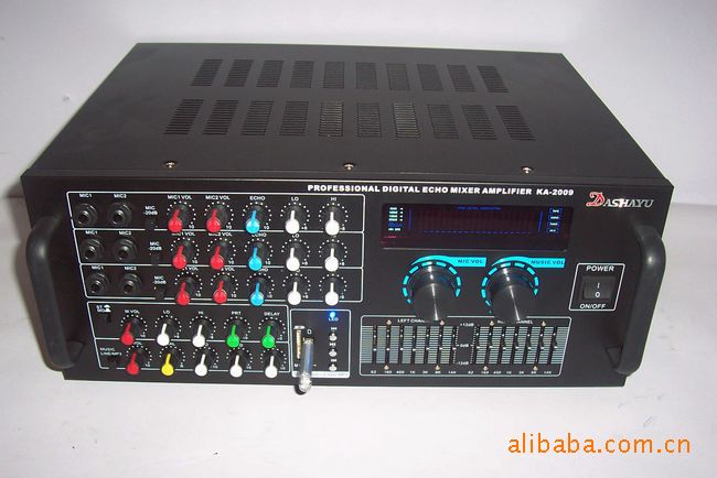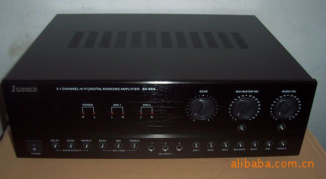 小專業型機殼,做工精致。采用方牛變壓器,兩路輸入,兩路輸出,一路音頻線路輸出,功率25-35W,額定功率30W??梢酝苿?寸以及以下的小功率音箱,連接兩只音箱作電腦音箱,音質勝于多煤體低音炮,聽音樂看電影玩游戲,效果都可以,但價錢還比好的多煤體低音炮便宜;裝有前級放大板,卡拉OK音效板,跟隨電腦歌曲自己K歌。