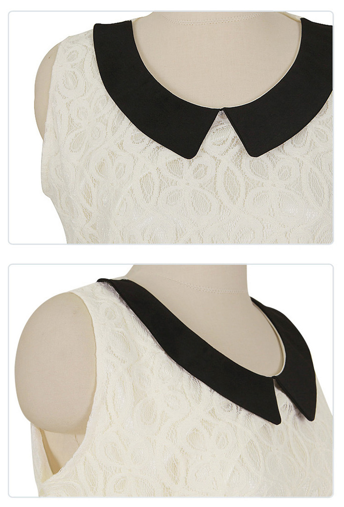 2013新款 收腰蕾絲鉤花娃娃領 無袖連衣裙