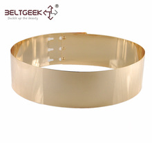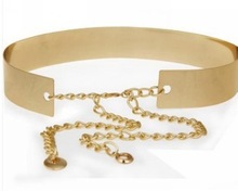 歐美風金色金屬鏡面個性女款松緊細款腰帶 批發 333010