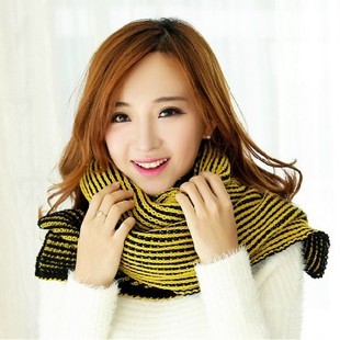 批發韓國秋冬新款圍巾 男女士情侶條紋圍巾披肩兩用 針織毛線圍脖