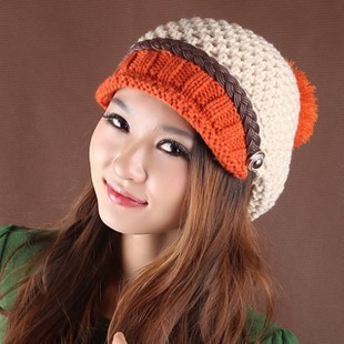 2013秋冬季新品韓版彩色球球毛線帽 卷邊皮帶邊雙色女士帽子批發