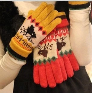 冬季新品 可愛小鹿雙層加厚保暖加長 五指分指男女情侶手套 批發