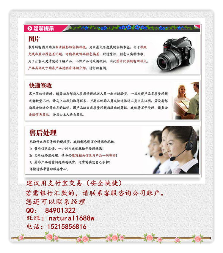 *商品缺貨現象(如個別工藝流程的延期)我們會非常及時通知您;