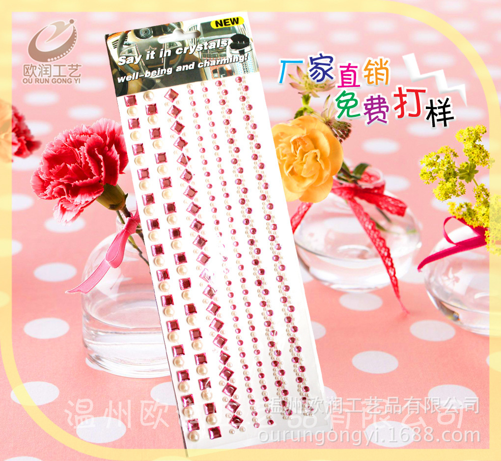 朋友,您好!溫州歐潤工藝品有限公司專業生產亞克力鉆貼、指甲貼、金蔥粉貼、水晶滴塑貼、泡泡貼、紋身貼紙等一系列鉆貼紙。