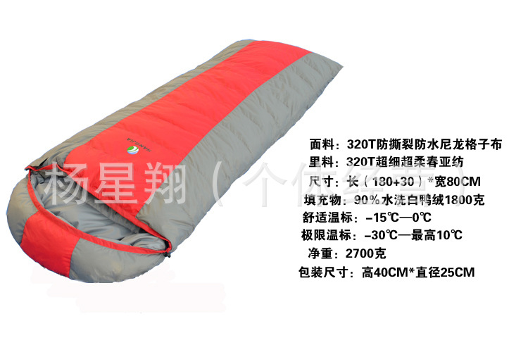 品 名:信封式羽絨睡袋戶外 加長加厚 優質鴨絨