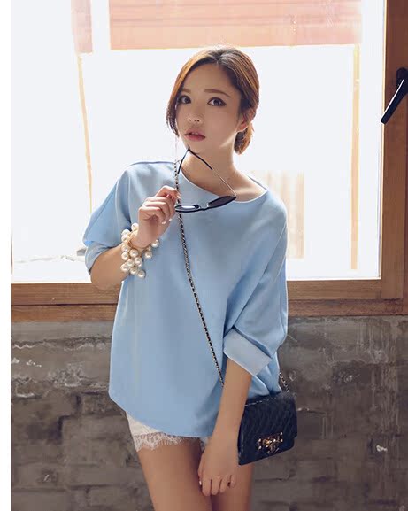 2015新款8536歐美設計寬松顯瘦雪紡衫上衣