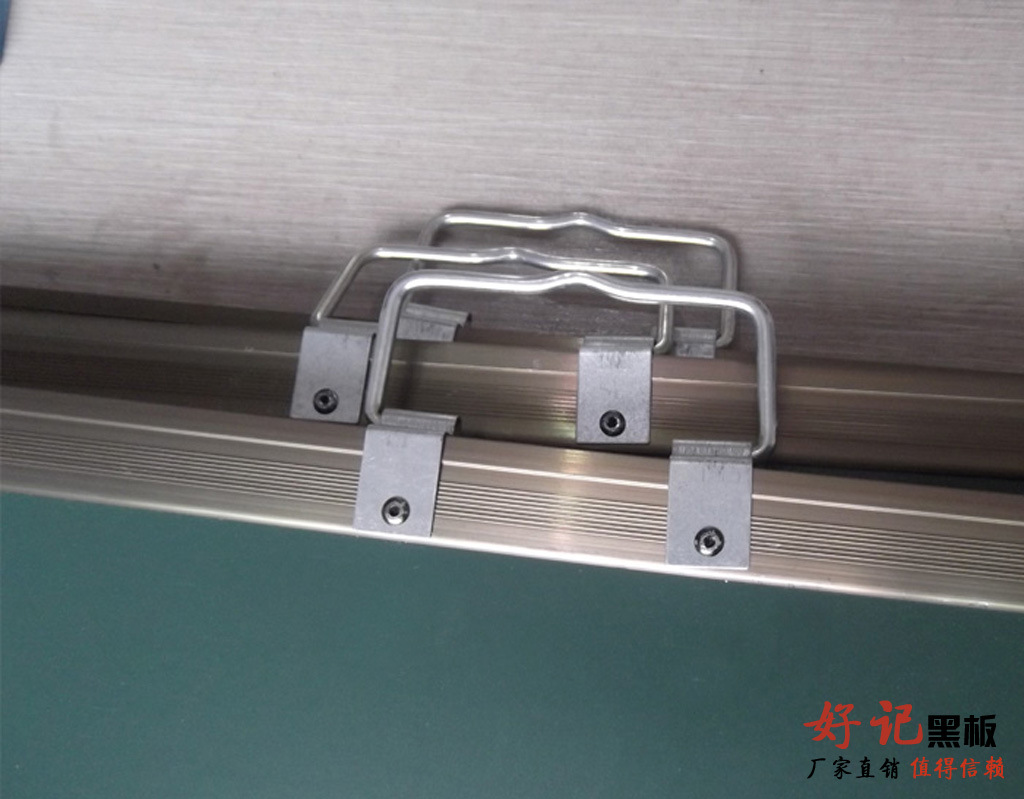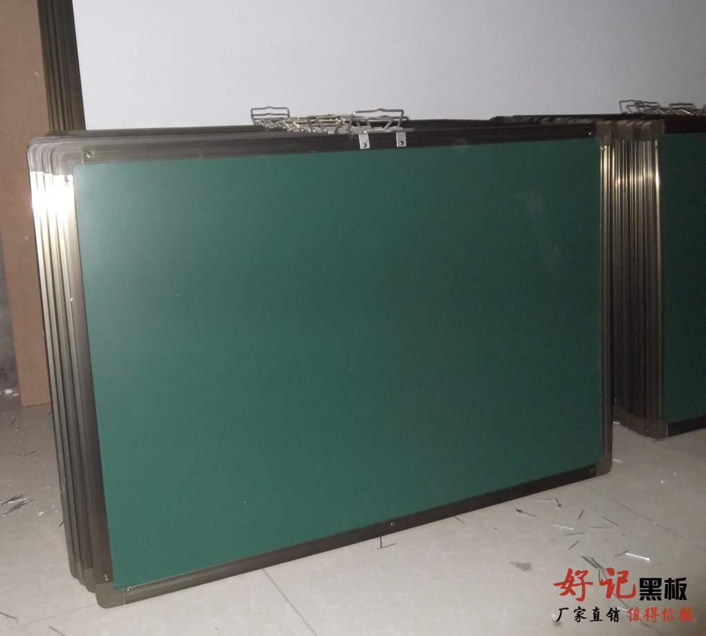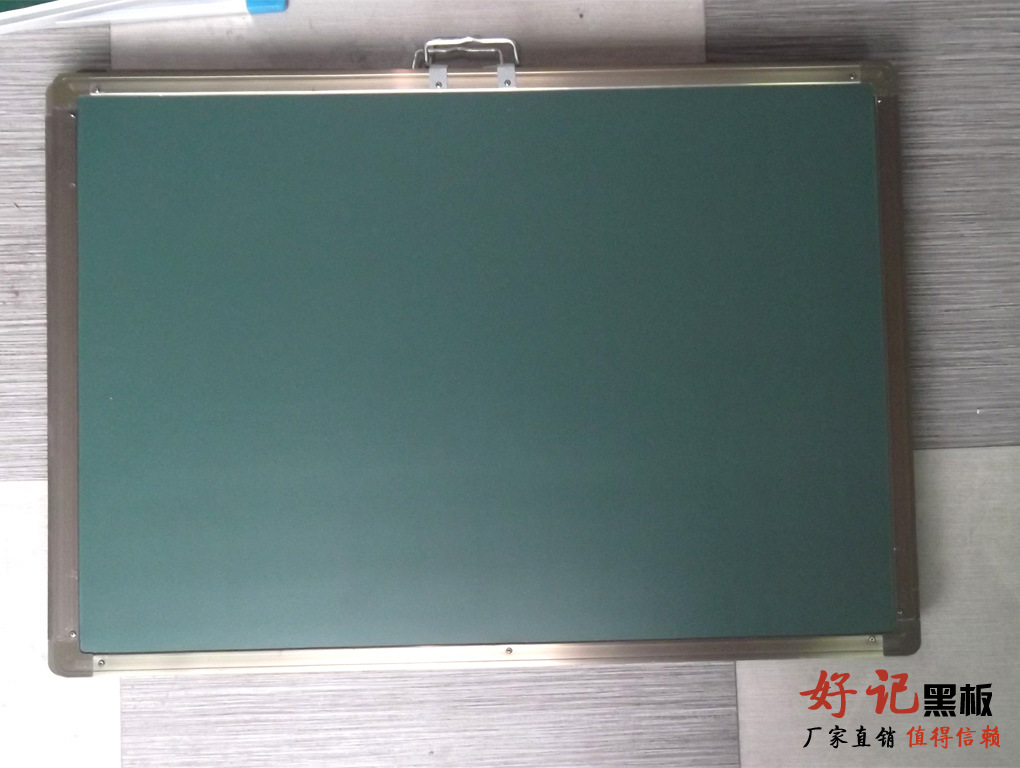 “好記”黑板采用本廠專用進口涂層烤漆鋼板,用獨特配制膠水與泡沫板或瓦楞板,再加背面鍍鋅板共三層固定好,用重物壓二十四個小時,平整后四邊用鋁合金【茶色,銀白色】包邊打好鉚釘,四角用ABS工程塑料連接,按照尺寸大小配套可移動鋼架,可定做各種規格,也可配套不銹鋼架,鋁合金此款經久耐用,美觀實用。