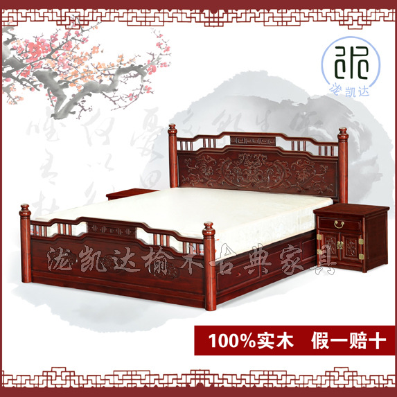 瀧凱達榆木家具 實木家具仿古明清家具中式古典家具圓柱床三件套