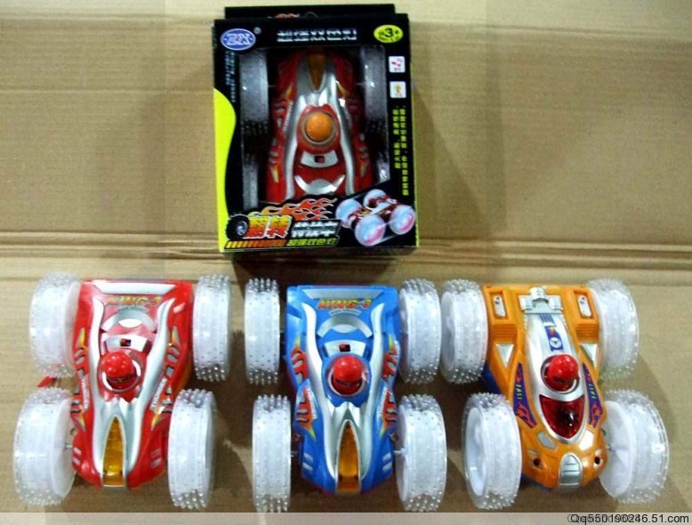 新品上市,遇上障礙,會翻個跟頭繼續向前,車子兩面都很漂亮的。打開開關,音樂響起,車輪燈光跟著閃爍,漂亮哈!