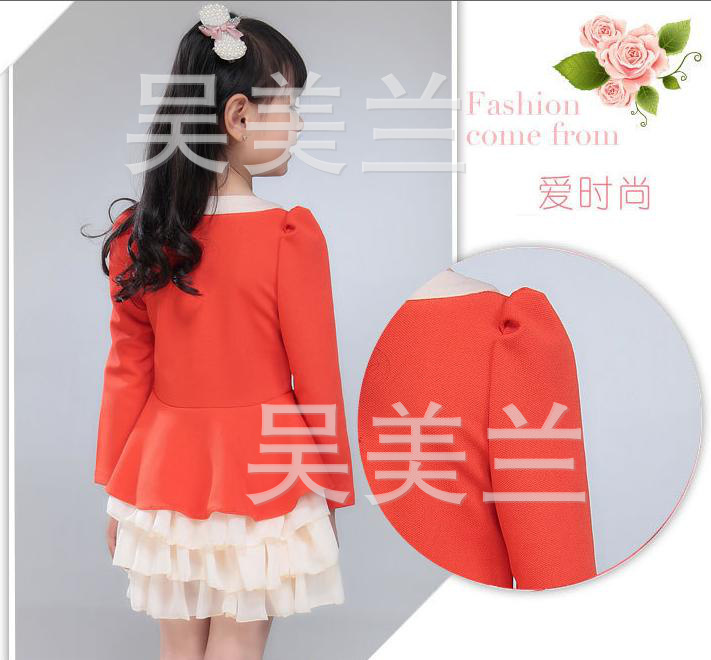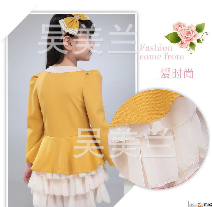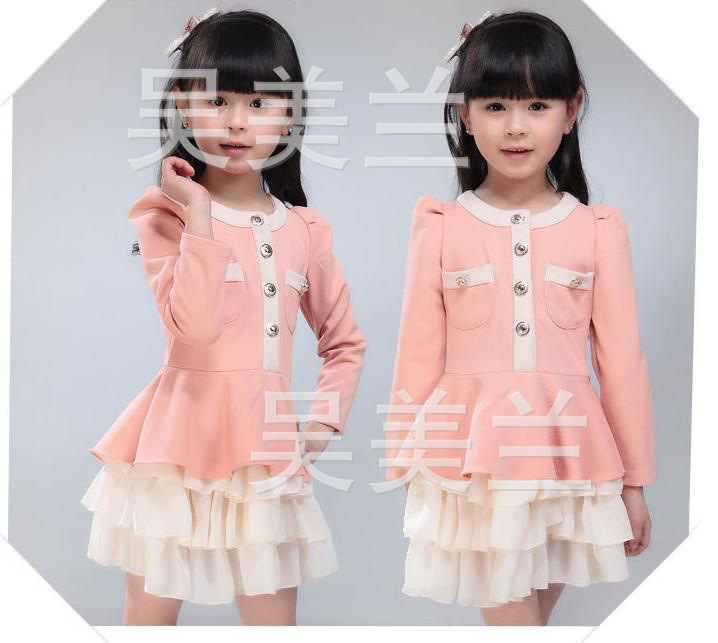 工廠直銷 長袖雪紡復古裙 童裝女童 小泡泡袖 荷葉邊蛋糕連衣裙