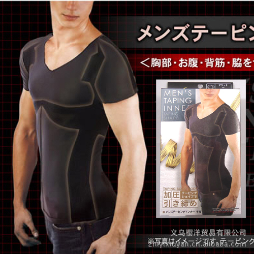 014-MTY-023(Y60)日本日單鍺鈦銀男士收腹美體塑身內衣短袖美體衣