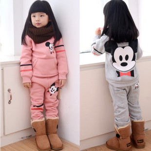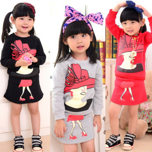 韓版新款冬裝高跟鞋圖案兩件套女童套裙抓絨加絨 童套裝廠家批發