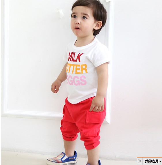 韓版童套裝夏 字母大口袋兒童套裝 哈倫褲休閑童套裝
