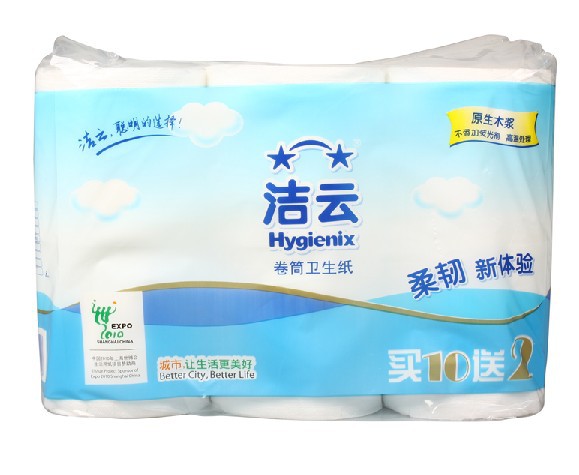 潔云實惠裝卷筒衛生紙(買10送2),紙質柔韌,不易破損,使用放心;100%原生木漿,天然純白,吸水性好