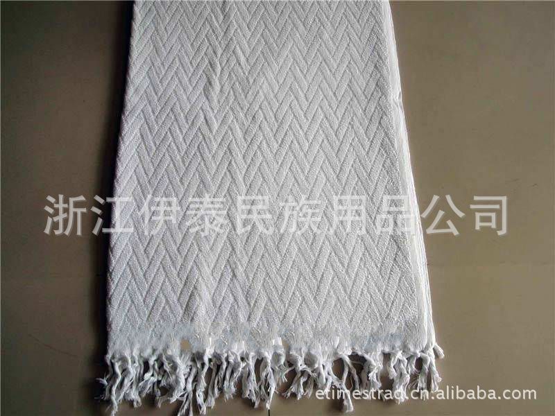 我司生產的穆斯林朝覲者晴綸提花戒衣,有多種花型,規格齊全,尺寸:200cmX105cm,210cmX110cm,220cmX112cm,重量:1080克、1200克、1300克、1400克、1500克。包裝:1套/袋,60套/件.有部分現貨供應。我公司生產的穆斯林朝覲者戒衣,款式有:毛邊、流蘇、提花等樣式,有全棉和晴綸材料.產品暢銷中東市場和阿拉伯國家.同時可根據客戶的不同需求生產、訂做。常年承接外貿訂單。