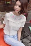 美花朵刺繡褶皺雪紡衫雪紡襯