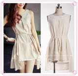 名媛風唯美鏤空長裙蕾絲無袖