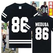 年輕潮潮流嘻哈球員版86號橫杠邊棒球款西海岸街舞短袖T恤男女裝滿100包郵¥42.00熱銷0件