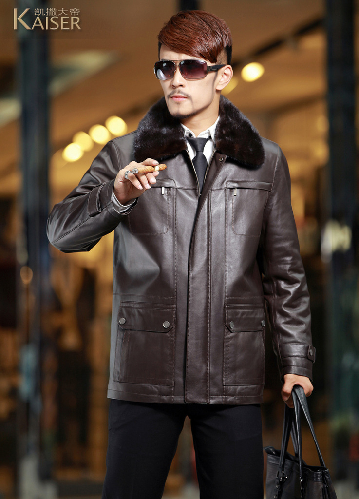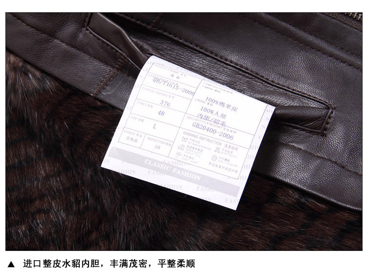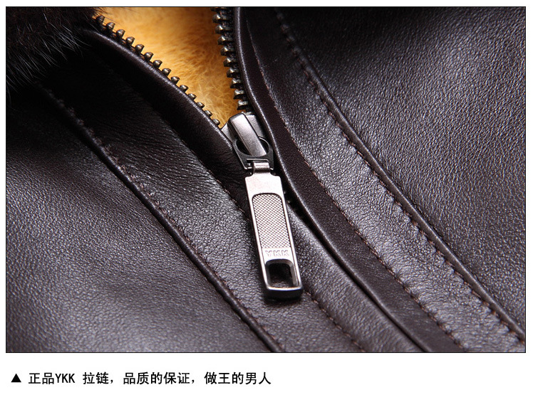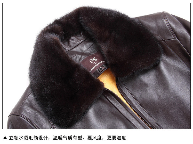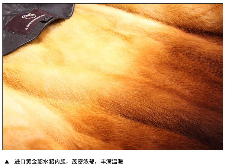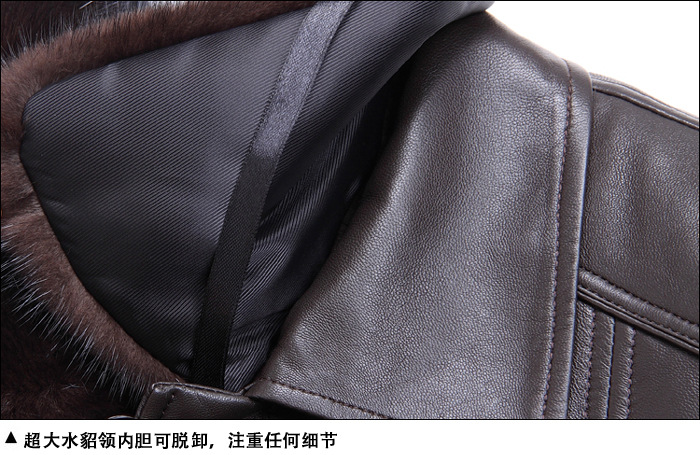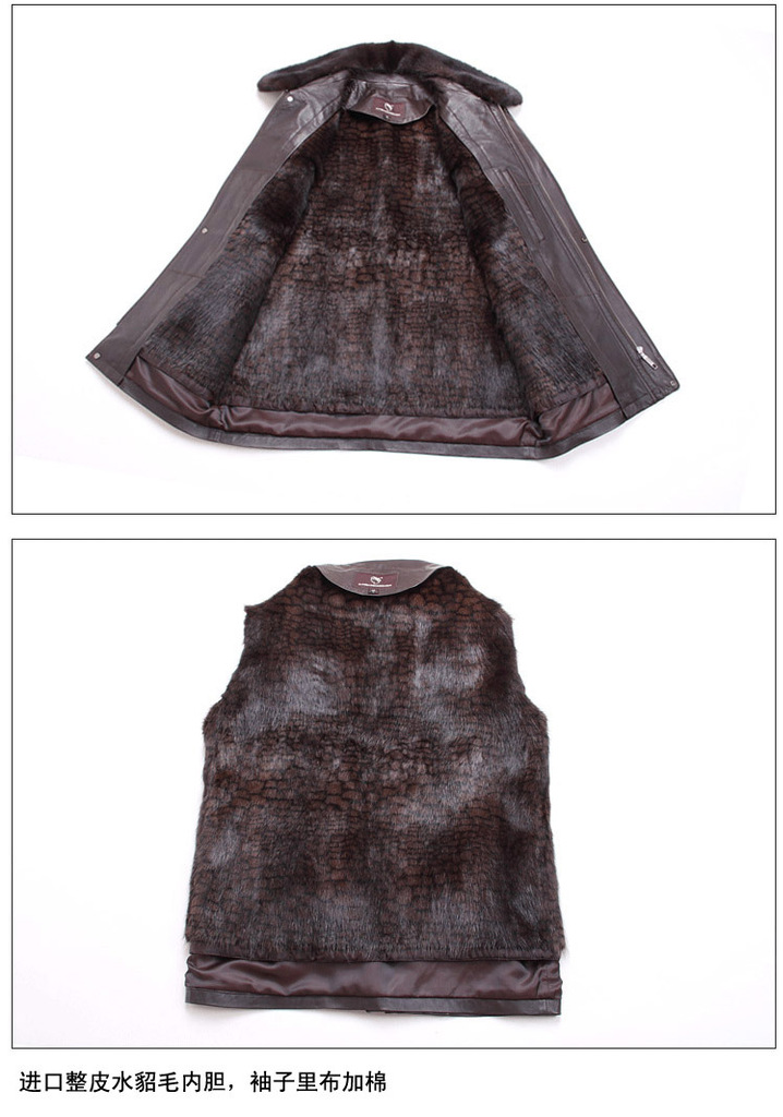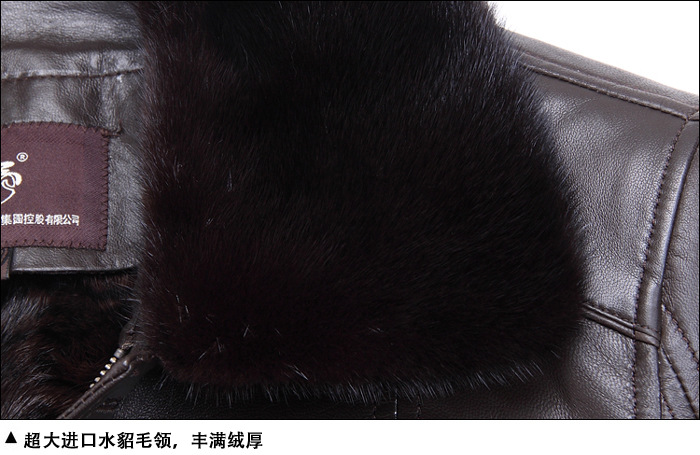 廠家直銷2014海寧男士水貂皮衣外套水貂毛領黃金貂內真皮尼克服