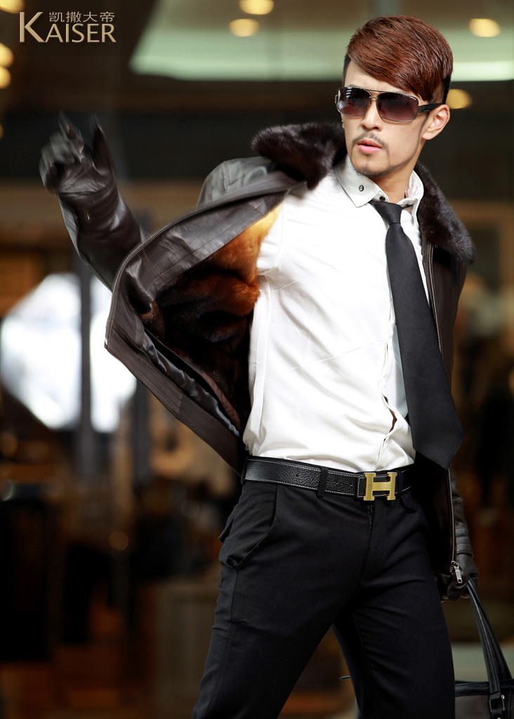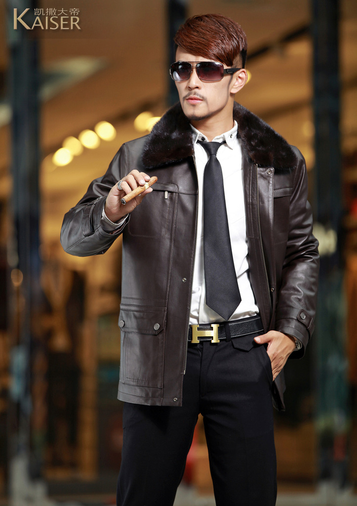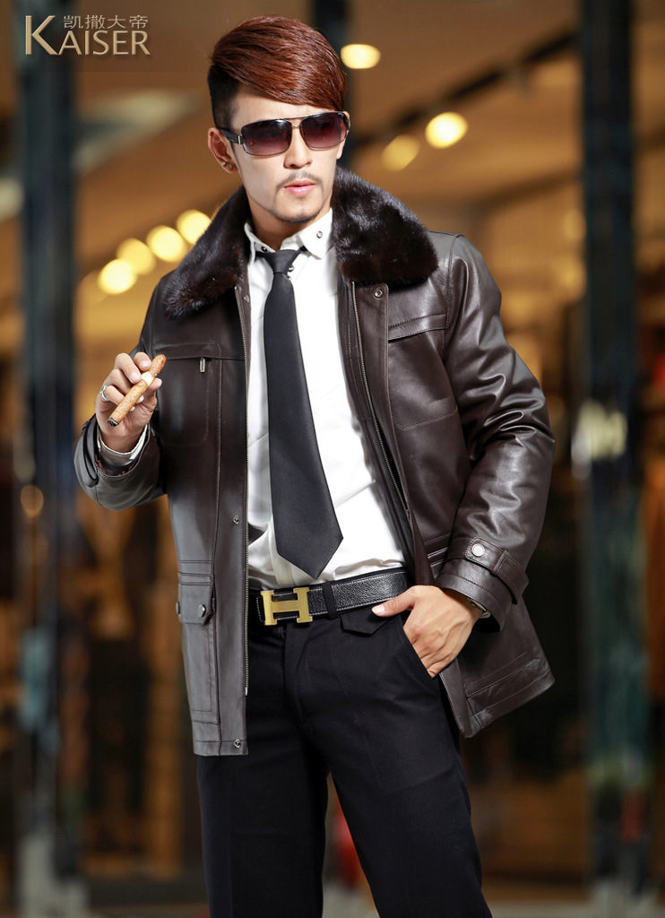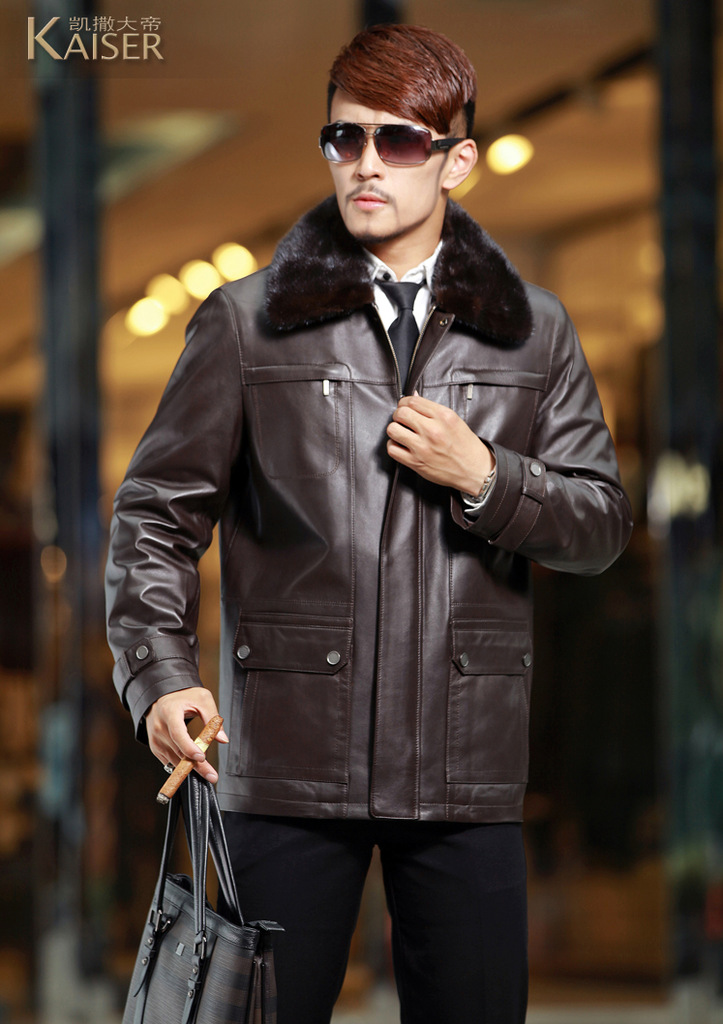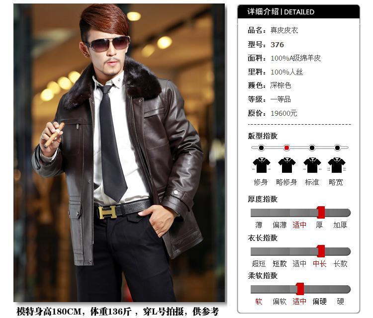 廠家直銷2014海寧男士水貂皮衣外套水貂毛領黃金貂內真皮尼克服