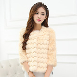海寧2014秋季新品羊羔毛七分袖短款波浪紋整皮進口兔毛皮草外套